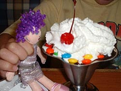 As I mentioned in my column this month, the kids love finding travel bugs in geocaches. These travelers go from cache to cache in search of a particular adventure. “Dora the Diner” is still with us after a month (we’re getting her into a new cache this weekend) so we took her to another diner; this time Friendly’s. Taking pictures of bugs doing silly things is a favorite activity of the kids.