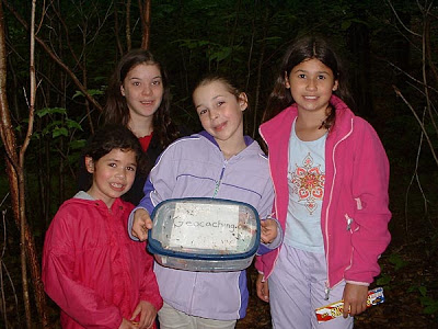 As you probably remember, my family hid our first ever geocache at the Lowell Preserve in Windham a few weeks ago for my column about geocaching. Within 24 hours of posting the cache to the web, someone had found it. But after that, the cache hadn’t seen much action, at least not on the web. So on Thursday I decided to to take the kids, and a couple of their friends, to visit the cache again and check the log for entries. It turned out that the cache had several visitors (about 10) so far; they just hadn’t logged their visit online.