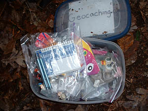 The geocache was pretty well stocked so we only added a few new items, including a Travel Bug. Over 40 people have visited the cache and wrote in the log book since we hid the cache in June. That’s a lot more people than logged their visits online but some first-time geocachers noted in the log book that they used the cache’s treasure map instead of a GPS. I’m guessing the newbies weren’t familiar with the geocaching.com website yet.