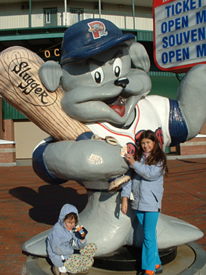 We were driving past Hadlock Field the other day and decided to stop to take a photo of the Portland Sea Dogs statue with some Flat Stanleys we have been hosting. Both flat friends came from boys so we thought a photo with a sports logo would be a fun picture for them.