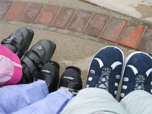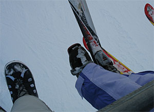 L. lost a ski getting onto the chair lift. A helpful girl in the chair behind us brought it up the mountain for her. It was an interesting glide off the chair lift for L. with one ski.