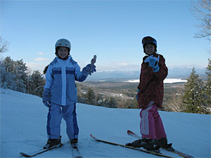 L. and I were heading down the mountain when G. snapped this picture with her digital camera. She was feeling quite smug that she can now handle a camera on the slopes.