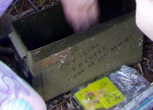 As for the hoopla about the old ammo boxes, they make great caches. The goodies don’t get wet and hold up well in all kinds of weather. We’ve certainly found our share of recycled ammo boxes and they were well-marked as the geocaching website suggests. It was also clear that the guy who hid the cache in PA, had received the proper permission to hide it from the Parks and Recreation department who manages the park where the cache was found.