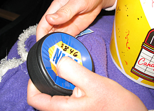 Each puck we had (6 altogether) came with a corresponding number slip.