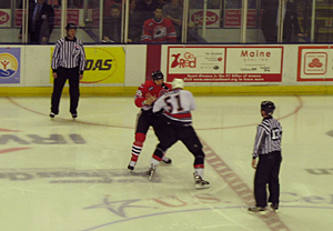 It didn’t take a minute for a fight to break out at last night’s Pirates hockey game. It took exactly one second.