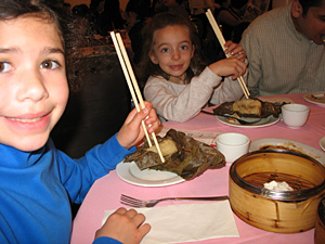 We then walked around Chinatown to work off the ‘Twinkees’ before finding a place to have dim sum, one of our favorite meals in the city. The kids enjoy dim sum because they like watching the carts of food rolling around the dining room and making their own choices. Zongzi (a rice dumpling wrapped in banana leaves) is a favorite and one we can’t seem to replicate at home.