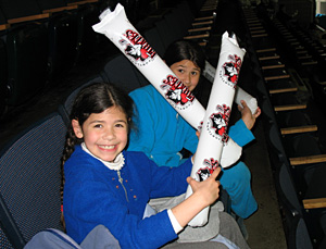 I blew up the ‘Bam Bams’ we were given at the game’s entrance gate and figured out how to maximize the noise factor (you have to hit them together when they are parallel to each other). And as if you couldn’t have guessed, there wasn’t a kid in the place who wasn’t hitting each other in the head with them, mine included.
