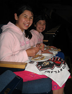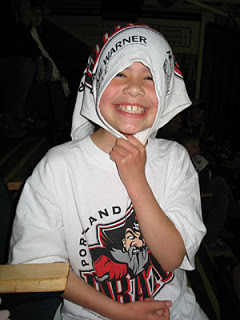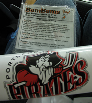 At last night’s Pirates hockey game the kids and I decided to rate the garb given out at each of the playoff games we’ve been to. We unanimously decided the Bam Bams were the best because we loved making noise with them. The kids also thought hitting each over the head with them, and watching other kids do that too, was “really funny.”