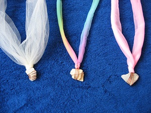 I had some craft wire and tulle from the girls’ old dance costumes that we used to turn the rocks into necklaces.