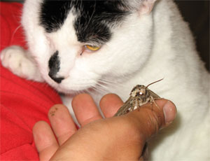 But there is one insect L. does not want to repel – moths. She is fascinated with them and treats every one she can catch (and that would be lots because she’s good at it) like loving pets. I’ll never forget the night she watched an old Godzilla vs. Mothra movie with Fino and cried for an hour afterwards because Mothra died at the end.