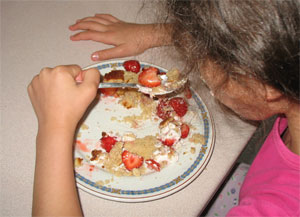We went right out to Dole’s Orchards after my earlier entry this morning. When we got home L. washed the strawberries, G. made whipped cream and I made the shortcake that we really like (we substitute some of the white flour with oatmeal flour to make it a little healthier plus, we all love oatmeal anyway).