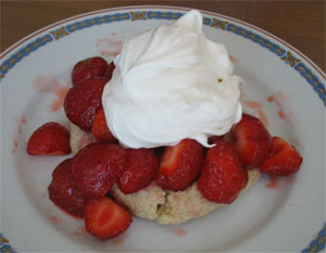 We went right out to Dole’s Orchards after my earlier entry this morning. When we got home L. washed the strawberries, G. made whipped cream and I made the shortcake that we really like (we substitute some of the white flour with oatmeal flour to make it a little healthier plus, we all love oatmeal anyway).