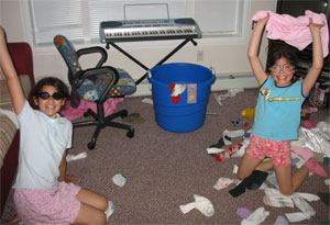 So as I was checking email, I heard a lot of laughing and then some crying while they were supposedly organizing the socks.