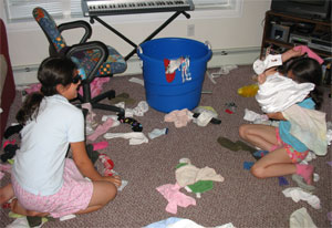 The girls were sorting their clean socks from the laundry basket. Generally, the girls don’t care if their socks match, but every once in a while I like to do an inventory.