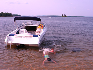 The kids loved the boat ride around the lake and letting their hair “blow dry” in the wind. Then when we anchored at the Sand Bar, they spent nearly all their time in the water swimming and playing with barbies.