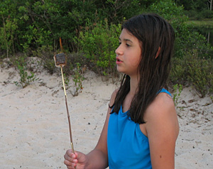 We eventually dragged the kids out of the water for dinner. And then dads built a small campfire afterwards and asked the kids if they wanted to toast marshmallows. As usual, the kids definition of “toasting” meant lighting marshmallows on fire. I can’t say how many times I’ve tried to show the girls how to get the marshmallows golden brown but they don’t care. They want them hot any way they can get them – and as soon as possible.