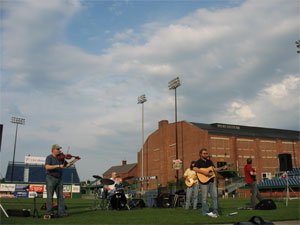 We were assigned to be “helpers” for the Don Campbell Band at the beginning of the event. Other than fetching a couple of water bottles and assisting with the break down of some tripod stands, we didn’t do much in the way of helping. But we had front row seats in the visitors dugout and really enjoyed the music.