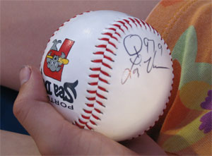 But the kids seemed most excited about the Lori Voornas autographed baseball they got (they love the Q radio station). There were a ton of photos on my camera this morning of her and Shane O’Brien on the field. Although I decided to spare everyone the play by play with just a couple of shots for the Seen gallery.