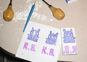 My carving skills have a lot to be desired but I managed to get something that sort of resembled Bunny on the eraser. And then I totally got lazy with our log name (RobotBunny) because initials was all I could manage.