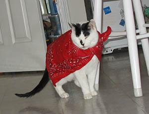 And speaking of our cat Toddy, he was sporting a new wardrobe last night thanks to L. She thought it was chilly in the house and wanted to make sure Toddy was warm.