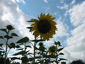 I asked L. to take some photos of the sunflowers in our yard over the weekend. They really are blooming now (thanks to all the chicken poop fertilizer) and as tall as last year. Although we liked the suggestion/comment from Nancy about making a sunflower house, we never did get our act together to plant them correctly to do it.