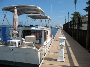 The boat, dubbed “The Treehouse,” on the public dock in Newburyport.