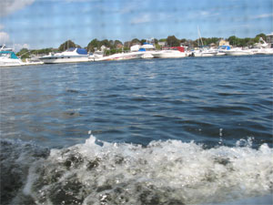 L. enjoyed driving The Treehouse and even the first reluctant G. enjoyed her chance to do it too. Actually G. was driving the boat on our approach to the public dock and it was suggested she turn over the wheel because the boat traffic was heavier and the buoys much closer together.