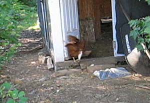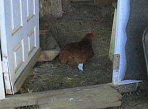 The latest news on the Lucky Lucy the chicken is that she’s getting physical therapy twice a day for her broken leg. That means we carry her out of the coop and encourage her to stand and walk around a bit. She’s standing on her own now.