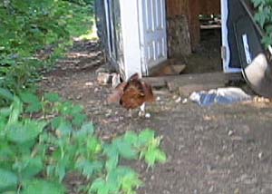 We had an eventful Thursday. Our blind cat Toddy protected us from an intruder while Lucky Lucy the chicken figured out how to escape a hose shower, broken leg and all.