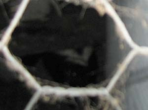 For a few weeks Fino has been repairing Chickenland (our chicken coop). There’s a few places where the wire fencing has started to weaken at the dirt line (it’s dug about a foot beneath the dirt) and there is a hole big enough for an animal to get through. Since we’ve been finding a few cracked eggs and a need to buy more chicken feed than usual, we guessed Chickenland might have a late night guest or two.