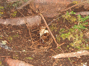 Fino took a few minutes to go back down the trail and lay some logs on the path to prevent others from disturbing the nest. He also took a couple of photos. I told him he was crazy to get close enough for a photo but thought it couldn’t have been any worse than it already was. At least, he said, he didn’t have to worry about them swarming all over G. again.
