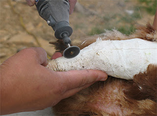 Lucy, of lucky chicken fame, had her cast removed today. Her leg is not straight and we really didn’t expect it to be given we know nothing about healing chicken’s bones.