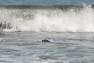 The pups swam near the beach initially and the kids had fun trying to guess when – and where – they would pop their heads above the water.