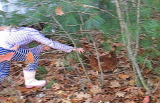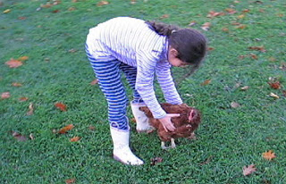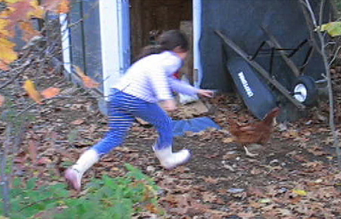 Yesterday L. tried to catch Lucky Lucy to see how her leg was doing. And as we quickly discovered, the slightly crooked leg (well, she was the first chicken leg cast Fino had ever done) is not a problem anymore. It took L. a few rounds of Walk Around the Coop before she finally caught her.