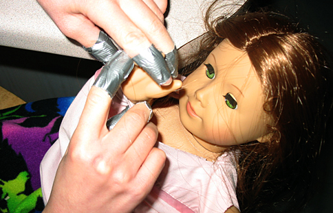 Apparently the duct tape worked great but later she was looking for help to remove it. Just FYI if you try this at home … the tape goes on a whole lot easier than it comes off.