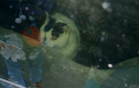 Toddy the blind cat took a car ride to be part of Grandpa’s annual Christmas card picture and ended up with an extended stay in the family vehicle. The reason: G. locked Toddy – and my keys – in the minivan.