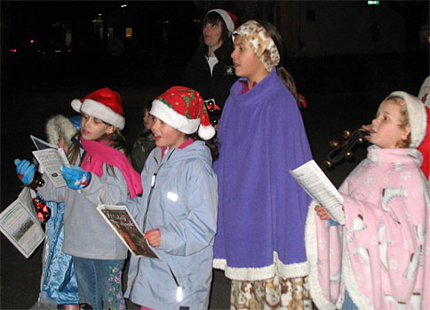 My girls and some of their Juliette Girl Scout friends came together last night to do some Christmas caroling in Gorham.