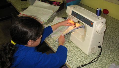 Then yesterday the kids’ 4-H club spent their meeting time sewing cat mats for the Animal Refuge League and this morning L. wrote a story about how she did it.