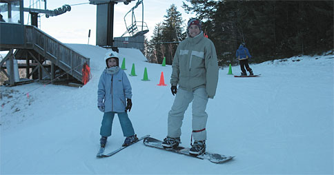After arriving and getting ourselves organized, we headed to the chair lift. L. was still a little grouchy and I thought her complaints about her new (used) skis being “too slippery” was just a reflection of her having one-of-those-days.