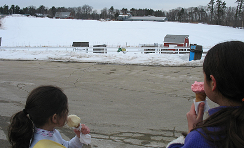 Eating an ice cream cone outside in February isn’t all that strange after an afternoon of cross country skiing.