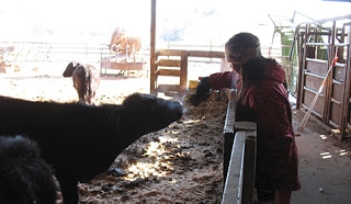 And being 4-Hers, they couldn’t resist spending some time in the barn. They used a pole to break up the ice in the goat’s water trough. And after discovering that the cows had heaters to keep their water from freezing it didn’t take G. long to wonder if we could get a heater for our coop. There’s no question she has a tough job in the winter with our chickens and ducks’ water.