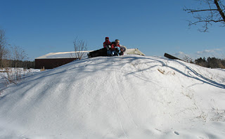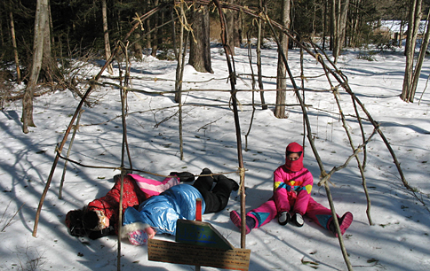Laying down on the icy snow wouldn’t have occured to me, even wearing my snowpants and warmest mittens. But hey, they’re kids and they simply couldn’t resist goofing around in the wooden structure.