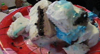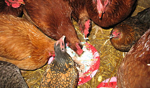 So Fino and I braved the driving snow with the heaping plate of ice cream cake to the chicken coop to test our hypothesis that chickens will eat anything.