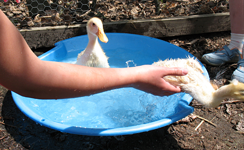 We have some new ducks this week and when we brought them home, the girls decided to use one of their winter sleds for a pool for them. This isn’t too odd for us though, the girls’ old sand box is used as a water trough in the main part of the coop.