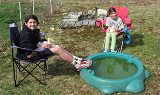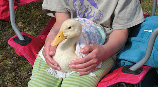 The girls are working with our new ducks to make them more friendly than our last bunch. As you can see, this takes a lot of work.
