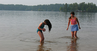 But yesterday the girls decided they could let their hair down – and stay down – while swimming because they’ve got a new swimming game now – Hair Flipping.