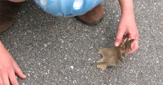 She had to ‘save’ the caterpillar from being run over and used a leaf to coax him back into the grass.