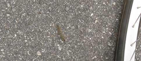 But her wandering eyes came in helpful for a stray caterpillar that had wandered onto the trail.
