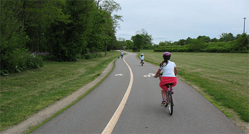 The trail was smooth without many hills and the bike lane was wide enough to accommodate the girls’ occasional swerving because they are still novice bike riders (they learned to ride about a month or so ago) and are working on their steering correction technique.