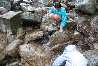 Not only was it a rainy afternoon, it was pretty chilly so the kids opted to climb around the rocks to explore the area rather than jump in for a swim (which I was grateful for as I thought the current was too strong for them that day anyway).